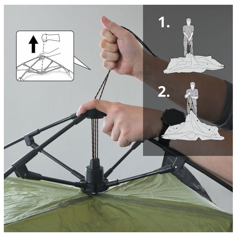 Stan je opatřen unikátním systémem, významně zkracujícím dobu sestavení. Stan se pouze rozloží do prostoru a za pomocí mechanismu (tahem nahoru) a následným zajištěním se sestaví do finální podoby. Stan je poté možné standartně zajistit pomocí kolíků. Pro složení stačí povolit mechanismus a stan uschovat do přepravního balení.