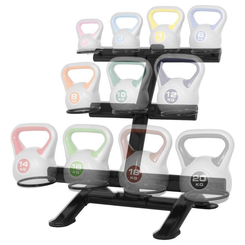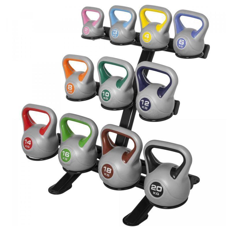 Kettlebell je již mnoho desetiletí jedním z nejoblíbenějších tréninkových nástrojů mezi sportovci. Sada kettlebell je nejen vizuálně přitažlivá, ale nabízí také profesionální kvalitu posilovny a obohatí tak tu vaši domácí. Kettlebelly umožňují provádět rozmanité a intenzivní tréninky, při kterých můžete zvýšit svou vytrvalost, flexibilitu, sílu a stabilitu. Trénovat můžete uvnitř i venku. Díky této sadě získáte kompletní sadu kettlebelů všech váhových kategorií od 2 do 20 kg včetně praktického stojanu pro přehledné skladování.