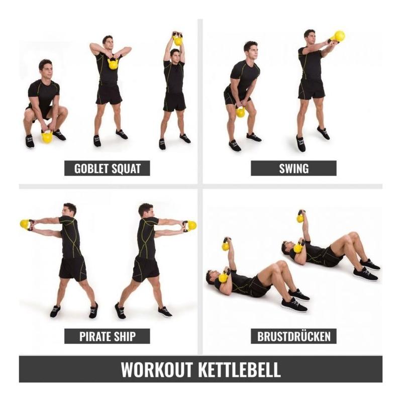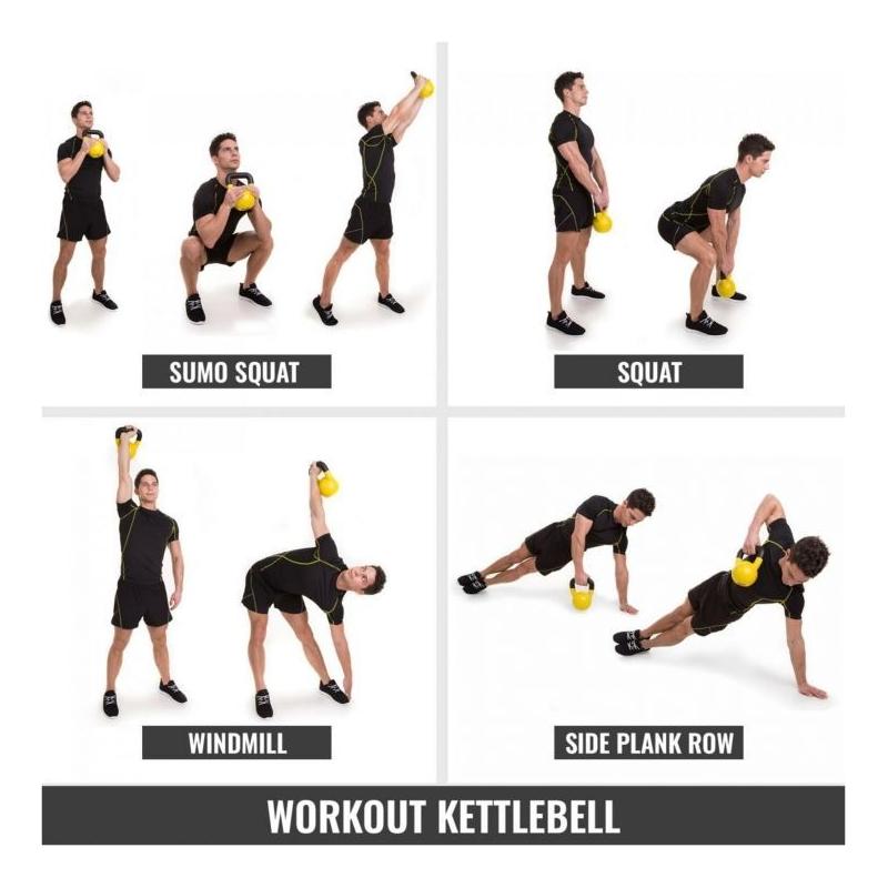 Klasické cviky s kettlebelly jsou squat, windmill, side plank row a swing (a mnoho dalšího). Chcete-li zvýšit svou kondici obecně, absolvujte 4 kola se sekvencí 5 tureckých vstávání, 10 vysokých zdvihů na každou stranu a 8 dřepů. Kettlebelly jsou také skvělé pro náročný cross-training.