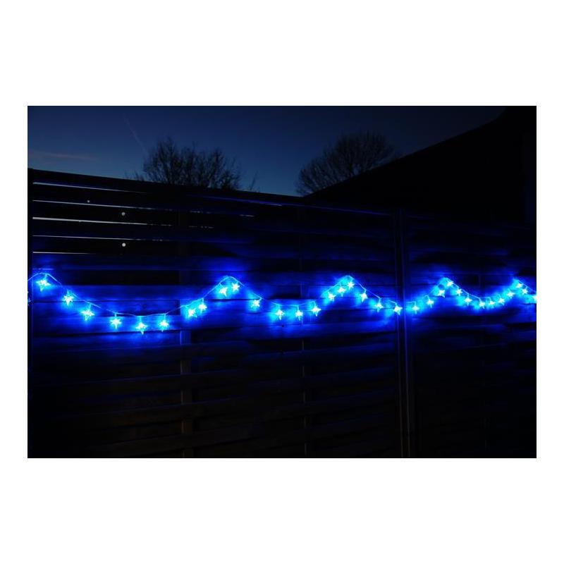Modře svítící hvězdy báječně podtrhnou slavnostní a romantickou atmosféru o vánočních svátcích. Osvětlení je vhodné pro vnitřní i venkovní použití. Délka světelné části je dlouhá 4 m. S tímto LED světelným řetězem ušetříte až 80 % energie oproti běžným žárovkám.