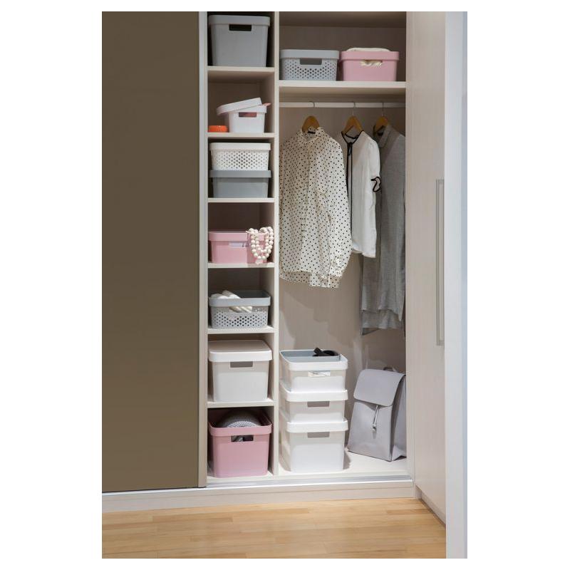 Menší úložný plastový box s víkem z řady INFINITY DOTS o objemu 4,5L. Řada INFINITY DOTS vyniká svým moderním, nápaditýmdesignem v podobě děrování-inspirovaný skandinávským stylem. Infinity box je nejen praktický, ale hlavně moderní doplněk interiéru. Osvědčí se jak v koupelně, šatně, tak i v kuchyni. Kvalitní a odolný plast - kvalita značky Curver.