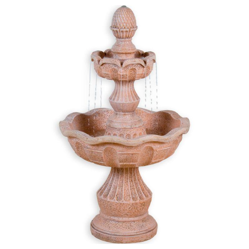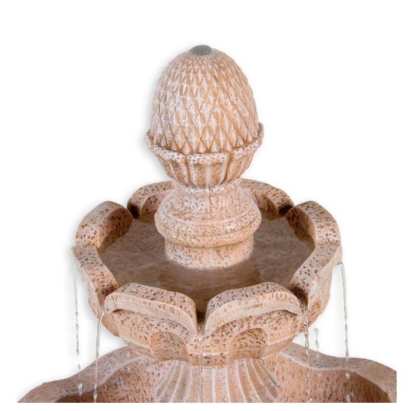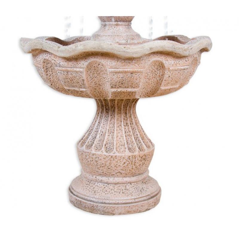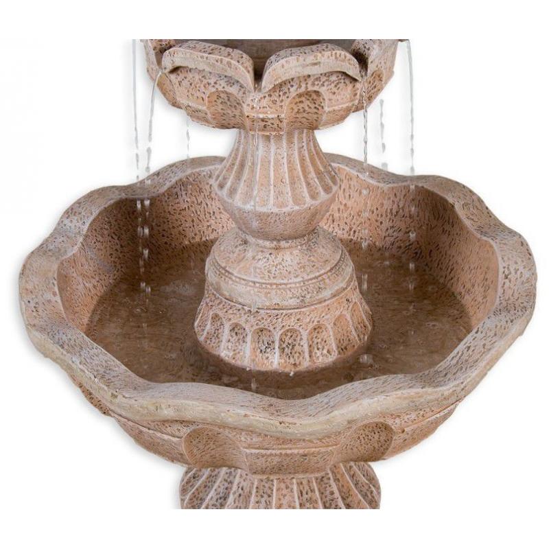 Krásná dekorativní kašna je ideální do zahrady, na terasu nebo do vašeho interiéru. Kašna o velikosti 58 x 58 x 102 cm a hmotnosti 20 kg je zhotovena z polyresinu a umělého kamene, který je velmi odolný. Polyresin se po vyschnutí stane velice trvanlivým, skvěle odolává povětrnostním vlivům a je prakticky nerozbitný. Díky povrchové úpravě vypadá polyresin například jako dřevo, mramor, žula, měď, bronz, terakota atd.