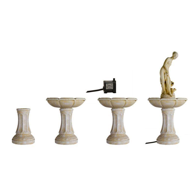 Romantická kašna se stane oblíbeným doplňkem Vaší zahrady a zároveň poslouží také jako stylové pítko pro ptáky. Kašna je vyrobena z polyresinu, který je velmi odolný. Vodu přečerpává čerpadlo s tichým chodem.