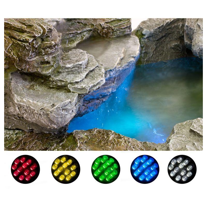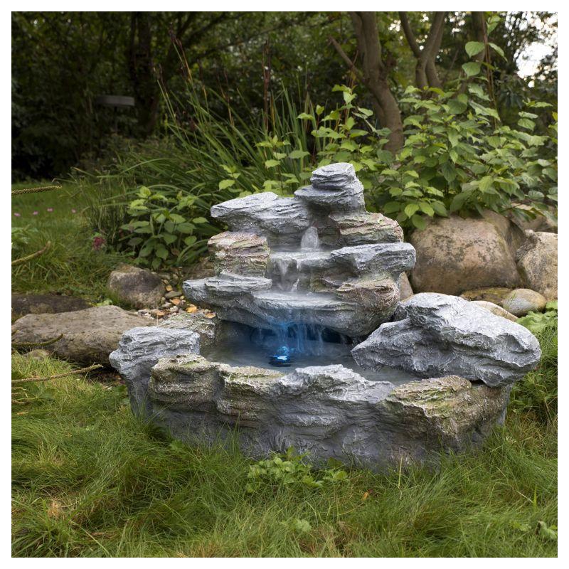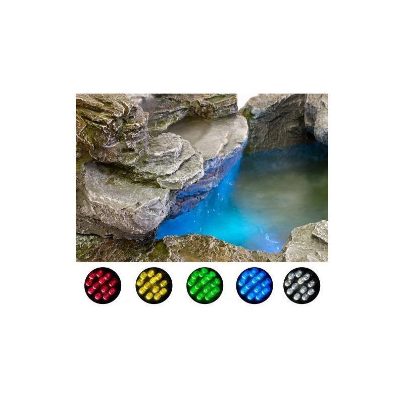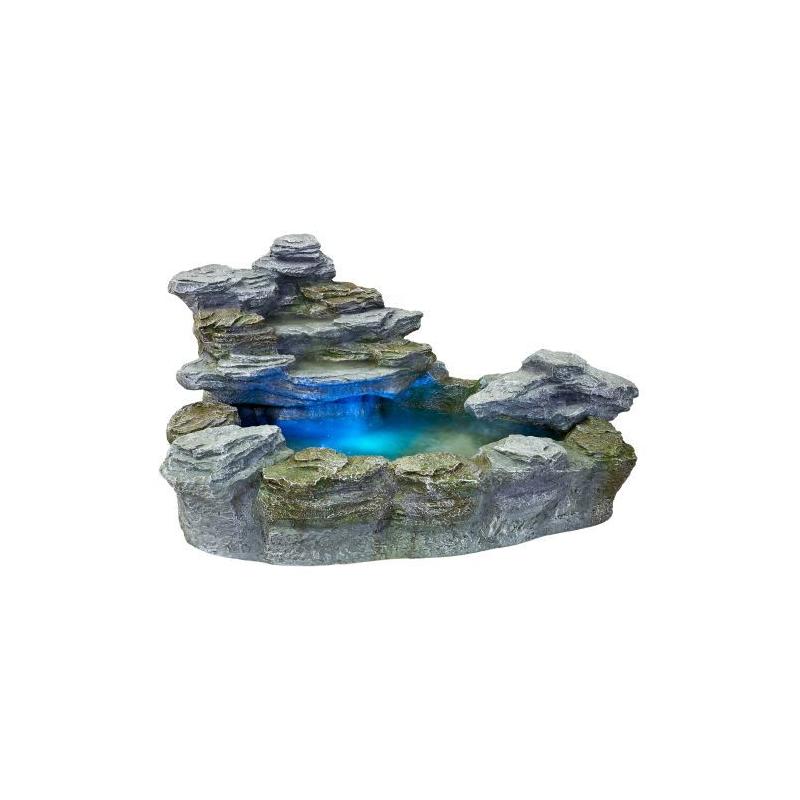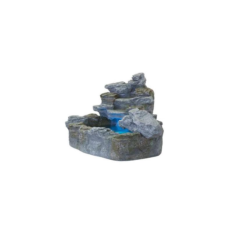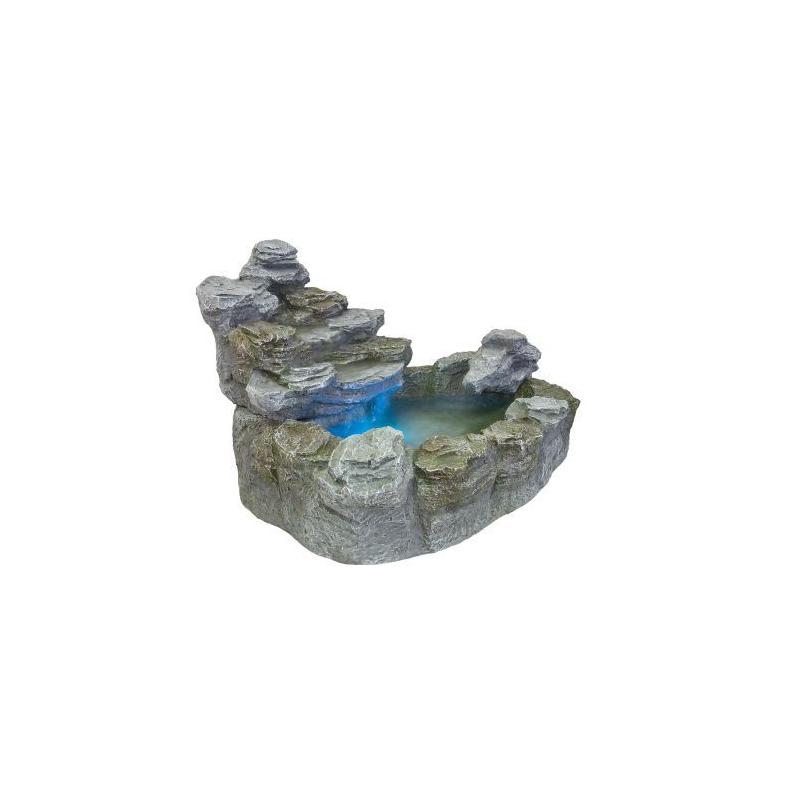Krásná a 100 cm dlouhá velkolepá fontána Stilista® "OLYMP" přináší do vaší zahrady tajemnou atmosféru! Zvláštní věc je dodávaný podvodní reflektor, který je dodáván se 4 barevnými disky: červená, modrá, žlutá a zelená. Plynulé běžící nastavitelné čerpadlo zajišťuje správné dodávání. Je vyrobena z polyresinu, který je odolný a těžko se odliší od skutečné skály. Voda vždy proudí v oběhu pomocí čerpadla.