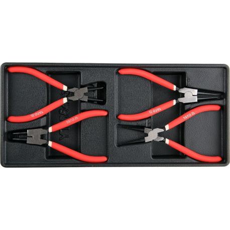 Sada 4 ks profesionálních chromvanadových segerových kleští v plastovém pořadači jako výměnný modul do šuplíků dílenských vozíků.