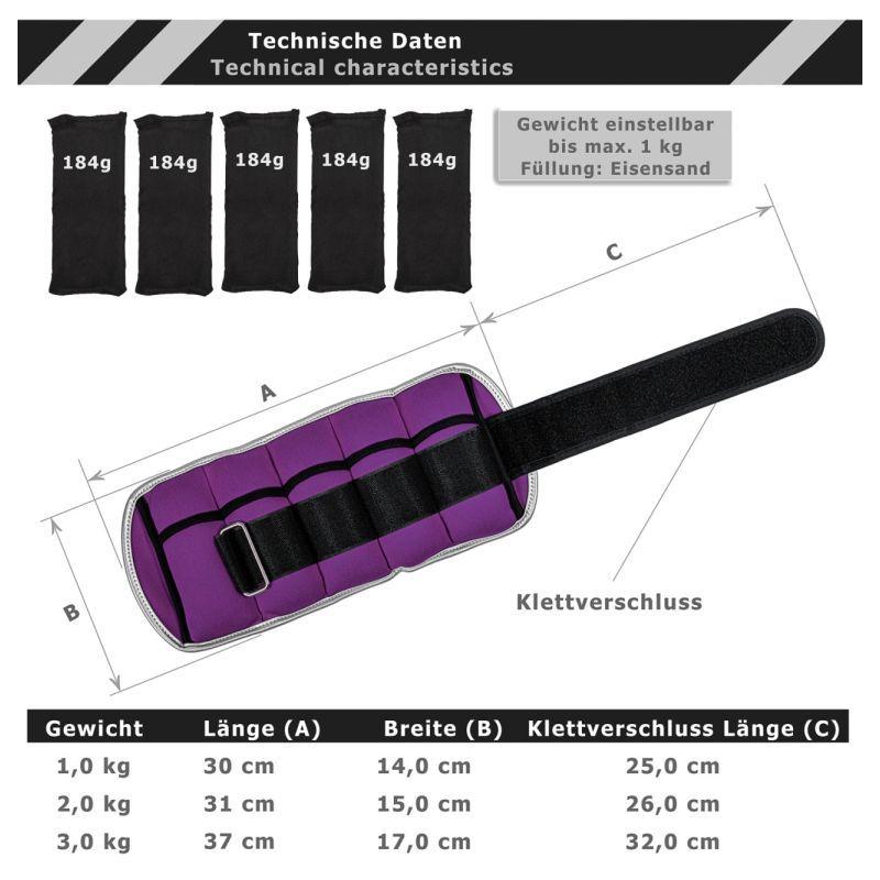 Neoprénové zátěžové manžety MOVIT obsahují 5 vyjímatelných 184 gramových nylonových zátěžových vaků naplněných železným pískem, které Vám umožní individuálně nastavit intenzitu Vašeho tréninku. Suché zipy umožňují přizpůsobení manžet individuálním tělesným mírám. Suché zipy a lemování jsou vyrobeny z reflexního materiálu pro lepší viditelnost a větší bezpečnost ve tmě. Díky tomu jsou manžety ideální pro turistiku, jogging, gymnastiku, rehabilitaci a mnoho dalšího.