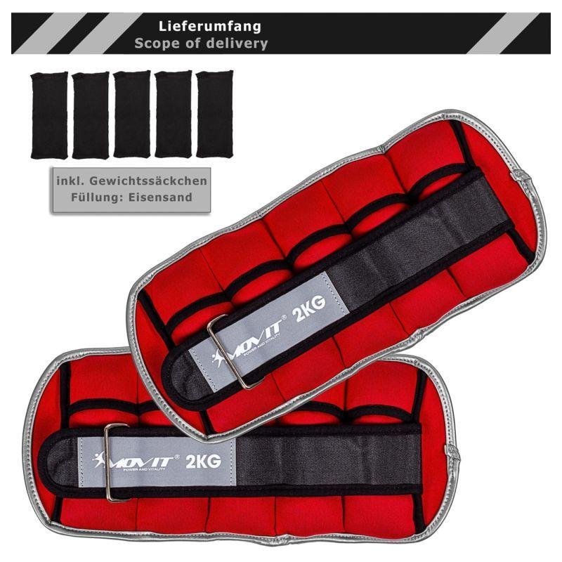 Neoprénové zátěžové manžety MOVIT obsahují 5 vyjímatelných 384 gramových nylonových zátěžových vaků naplněných železným pískem, které Vám umožní individuálně nastavit intenzitu Vašeho tréninku. Suché zipy umožňují přizpůsobení manžet individuálním tělesným mírám. Suché zipy a lemování jsou vyrobeny z reflexního materiálu pro lepší viditelnost a větší bezpečnost ve tmě. Díky tomu jsou manžety ideální pro turistiku, jogging, gymnastiku, rehabilitaci a mnoho dalšího.