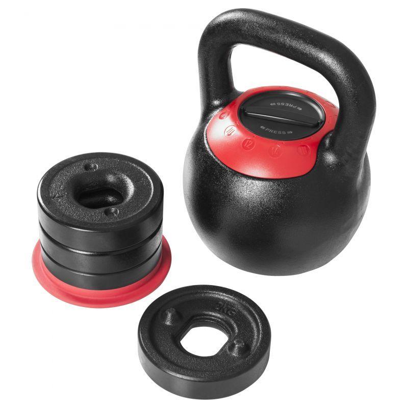 Jednoduchý systém s několika závažími pro zvýšení hmotnosti kettlebellu. Jednoručka ve tvaru koule s pohodlným úchopem. Používání je naprosto jednoduché! Kettlebell pomocí horního víka otevřete a hmotnost zvýšíte přidáváním jednotlivých závaží do těla kettlebellu. Povrch činky je odolný, zaručuje dlouhou životnost. Tělo činky a přídavná závaží, která jsou součástí balení jsou vyrobena z kvalitního a odolného materiálu.