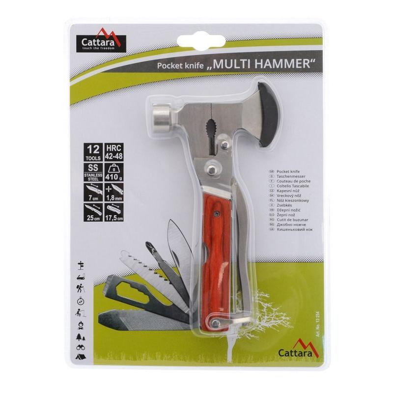 Multi Hammer je dodán včetně textilního pouzdra, které se dá přichytit na opasek. Nevyčerpatelné využití dělá z tohoto nástroje ideálního pomocníka do lesa, na ryby, do kempu a další outdoorové aktivity.