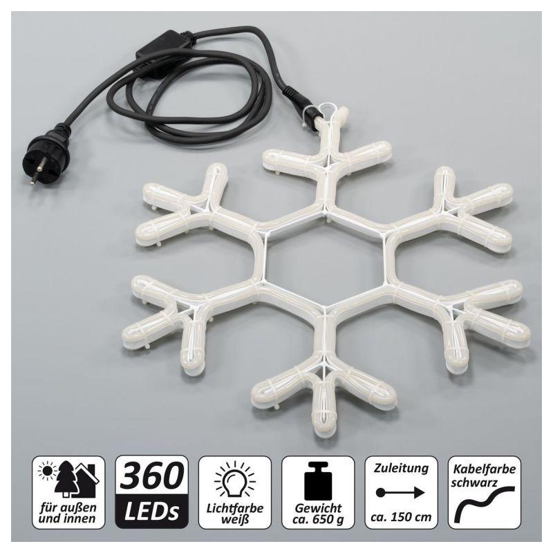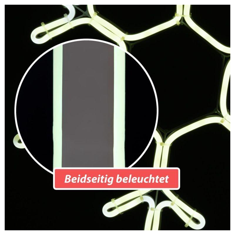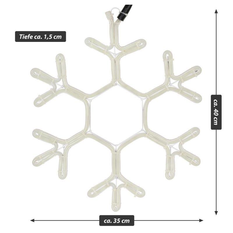 Velká sněhová vločka je ideální jako dekorace do oken, ale lze ji použít i na dveře a stěny. Lze je používat v interiéru i exteriéru. Osvětlení v neonovém designu. Testovaná třída krytí IP44 zajišťuje bezpečnost i pro venkovní použití.