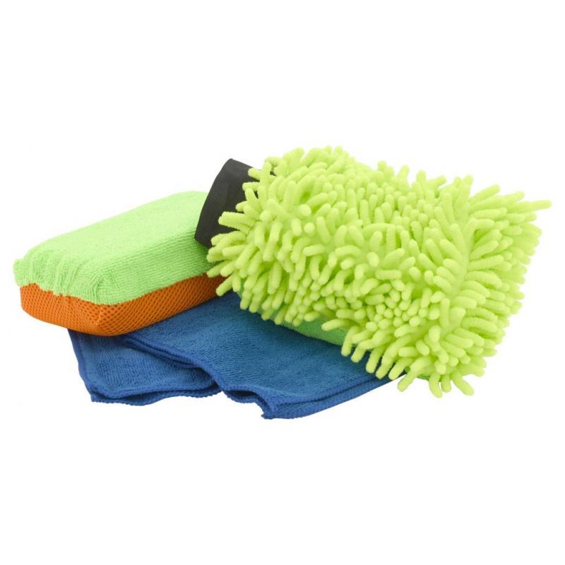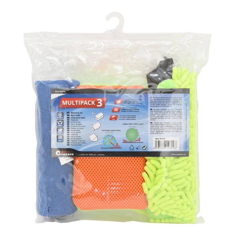 Multipack 3 je sada určená pro komplexní mytí vozu a následnou aplikaci ochran karoserie. Jednotlivé prvky sady byly vybrány v duchu moderních trendů pro mytí vozidel. Pro šetrné mytí je k dispozici mycí rukavice z mikrovlákna s třásněmi délky 2,5 cm na straně jedné a jemnou mikrovlákenou vrstvou na straně druhé. Další součástí je houbička opatřená jemnou mikrovlákenou vrstvou která je obzvláště vhodná k nanášení a následnému rozleštění vosků a jiných ochran. Druhá strana houbičky je opatřena mřížkovanou vrstvou vhodnou na čištění odolných nečistot. Nedílnou součástí pro efektivní mytí vozu je i mikrovlákenný hadřík, který může být použit buďto k osušení vozu (lehce navlhčený mikrovlákenný hadřík efektivně saje vodu), nebo k finálnímu leštění nanesené ochrany karoserie (setřením přebytečných stop vosků se zamezí šmouhovatění). Hadřík lze ale použít i ke zcela jiným účelům. Rukavice s třásněmi je ideální k použití metodou dvou kbelíků, kdy v jednom je voda s autošamponem a ve druhém samotná voda k oplachu zachycených nečistot na rukavici.