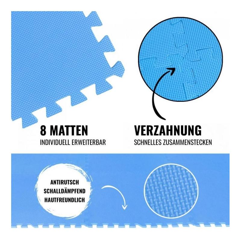 Sada ochranných podložek Gorilla Sports obsahuje vždy 8 kusů, které do sebe můžete flexibilně zasunout díky jejich spojovacím prvkům. Ochranné rohože jsou ideální pro ochranu vašeho vybavení a příslušenství. Izolují teplo, hluk a zvuk a jsou příjemné na dotek. Snadno se také čistí a jsou vhodné jako podložka pro cvičení na podlaze.