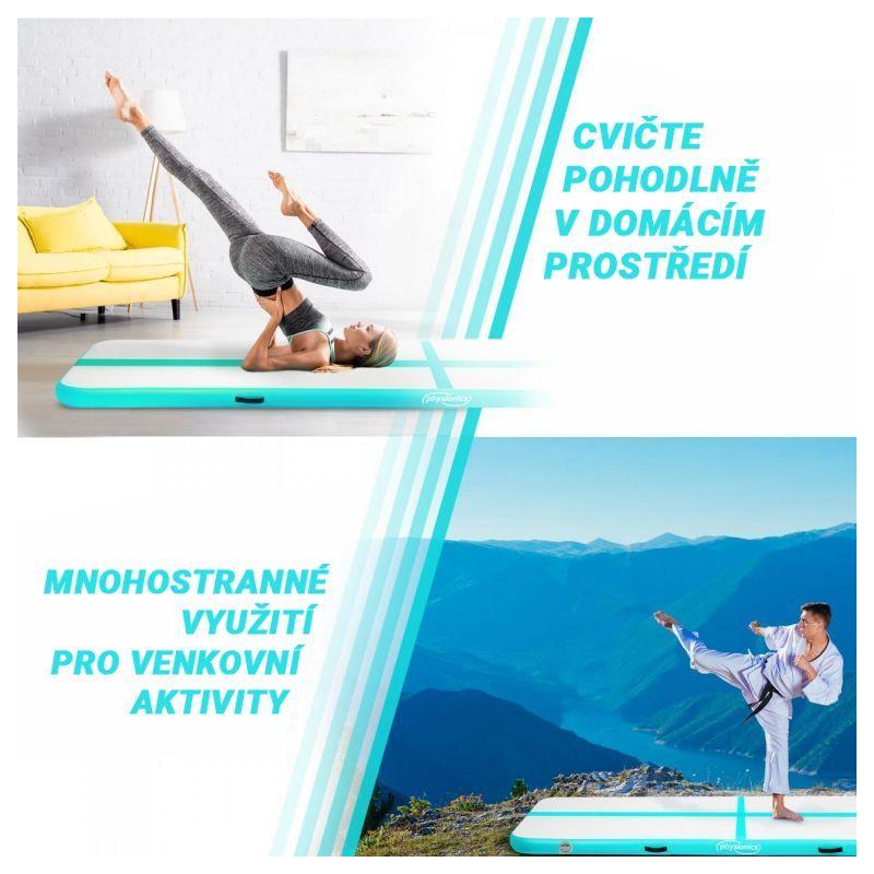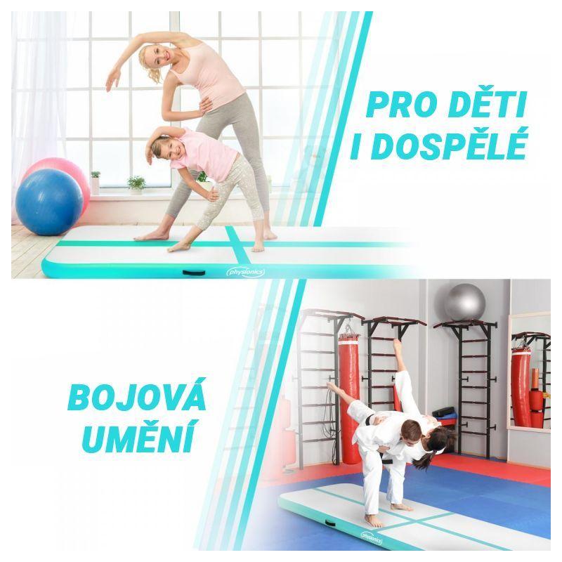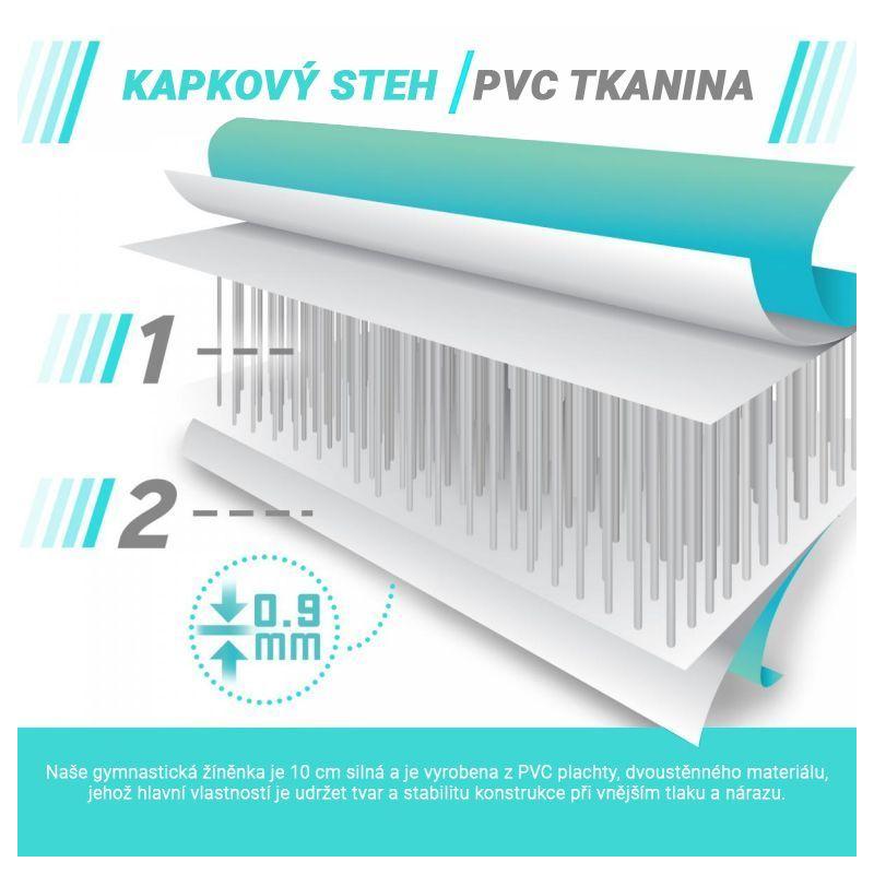 Nafukovací gymnastická žíněnka je univerzální tréninkový nástroj vhodný pro širokou škálu sportovních aktivit, jako je gymnastika, cheerleading, parkour, bojová umění, školní sporty a další. Je také možné ji využít v bazénu. Tato žíněnka je vyrobená z dvoustěnného materiálu, jehož hlavní vlastností je udržet tvar a stabilitu konstrukce při vnějším tlaku a nárazu.