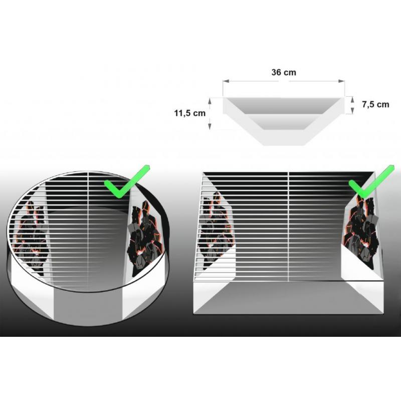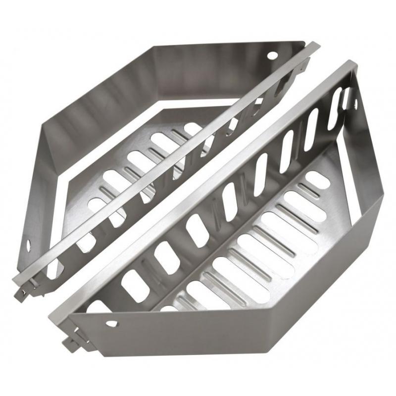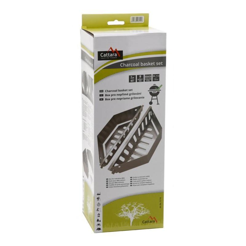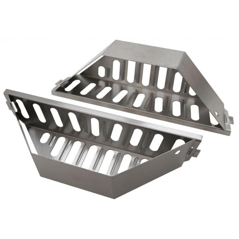 Sada boxů pro nepřímé grilování slouží ke grilování pokrmů mimo přímé žhnutí z uhlí. Metoda nepřímého grilování se používá u objemnějších pokrmů, jejichž příprava zabere více času, například celé kuře, žebra a další. Nepřímé grilování je pozvolné a nedochází u něj k nechtěnému připalování pokrmů. Boxy se umístí do grilu tak, aby přímo nežhnuly na umístěný pokrm. Plní se již zažehnutým uhlím. Při grilování pak dochází k lepšímu rozprostření žáru. Sada obsahuje 2ks těchto boxů z nerezové oceli. Každý box má rozměry 36 x 11,5 x 7,5 cm. Je vhodný jak do hranatých tak kulatých grilů patřičných rozměrů.