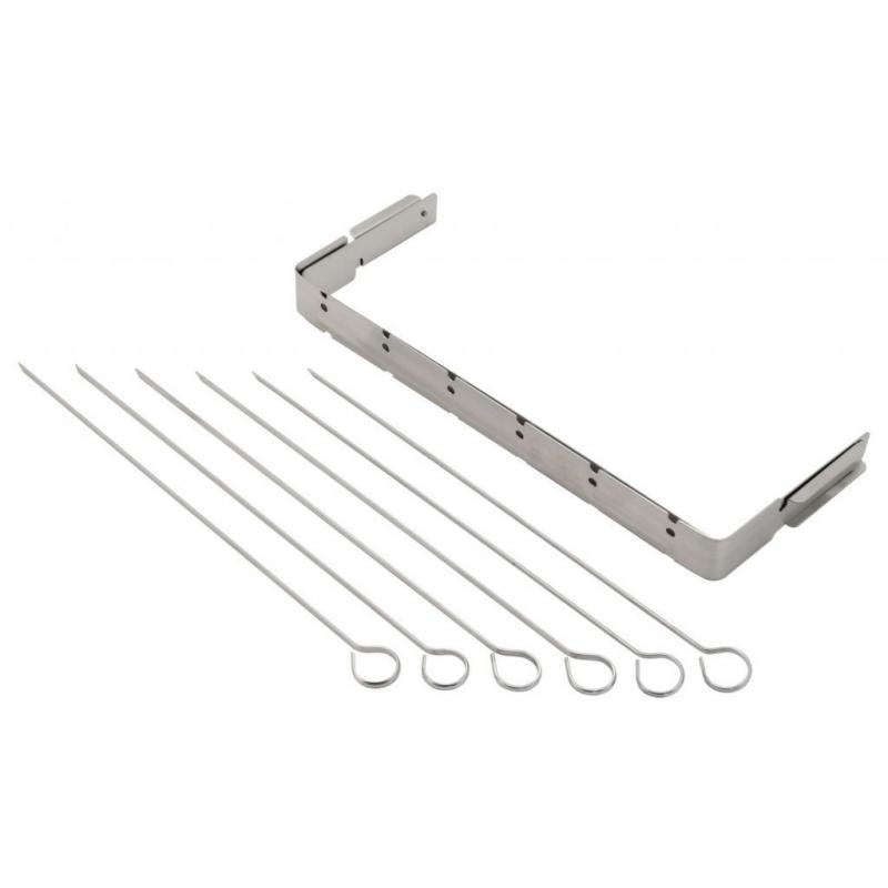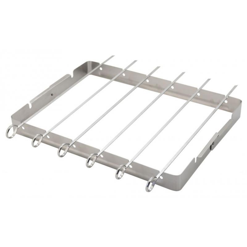 Grilovací sada na přípravu špízů skládající se z rámečku a 6x špízových jehel. V sadě je 6 kusů jehel z nerezové oceli s délkou 34 cm, které jsou určené k položení na rám ve výšce 3 cm, či k přípravě špízů při protažení otvory ve výšce 2 cm, čímž je po ugrilování vytažením jehel z konstrukce zajištěno snadné stažení pokrmu. Rámeček z nerezové oceli má rozměry 35 x 25 cm a jeho použitím je výrazně usnadněné otáčení jednotlivých špízů při jejich přípravě.