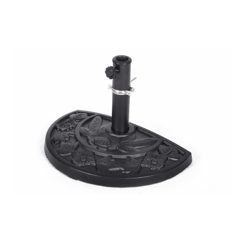 Polokruhový deštníkový stojan vyrobený z polyresinu v elegantním vzhledu, černě lakovaný, s ocelovou trubkou. Vhodný pro slunečníky až do průměru 3 metry - ne pro terasové deštníky.