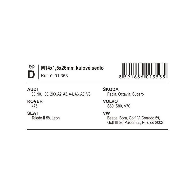 Pojistné šrouby kol D M14x1,50x26mm kulové sedlo | |