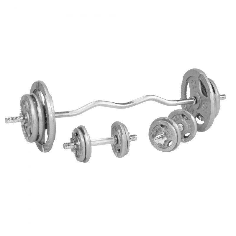 S tímto setem se můžete plně soustředit na tricepsy a bicepsy. S činkou ve speciálním SZ tvaru si zajistíte vždy dokonalý úchop při cvičení. Tvar tyče činky také zabraňuje křečím. Zátěžové kotouče jsou vyrobeny z práškově lakované litiny, a proto jsou obzvláště stabilní a robustní. Díky chytrým úchytům můžete zátěžové kotouče používat k mnoha dalším cvikům, například ke sklapovačkám.