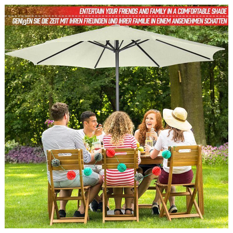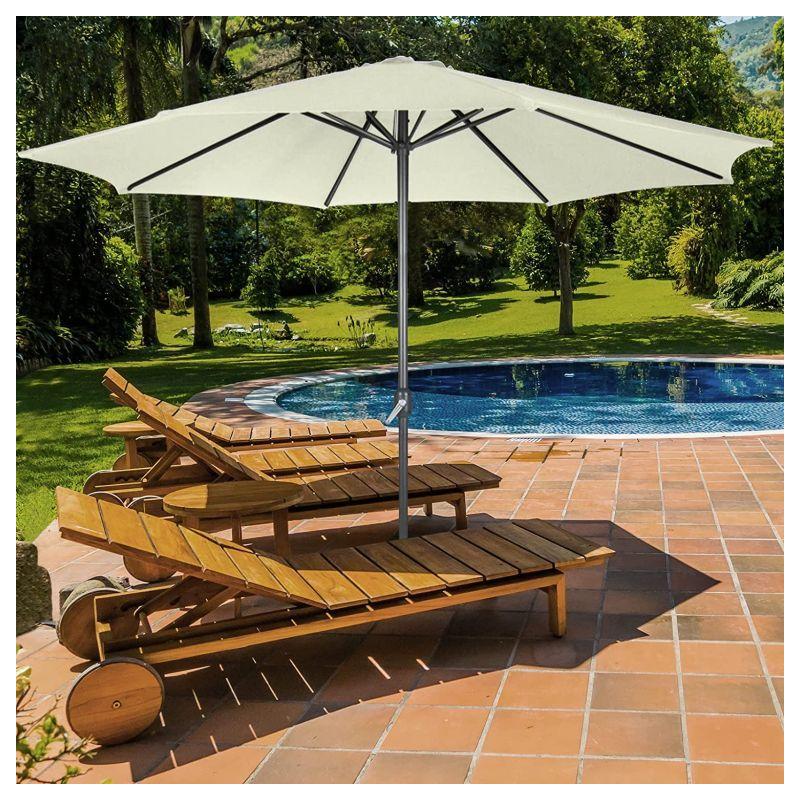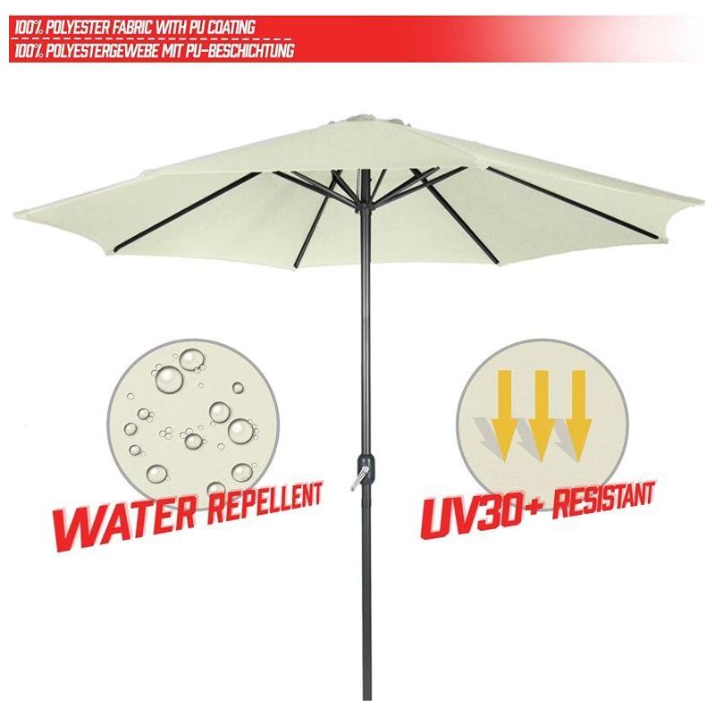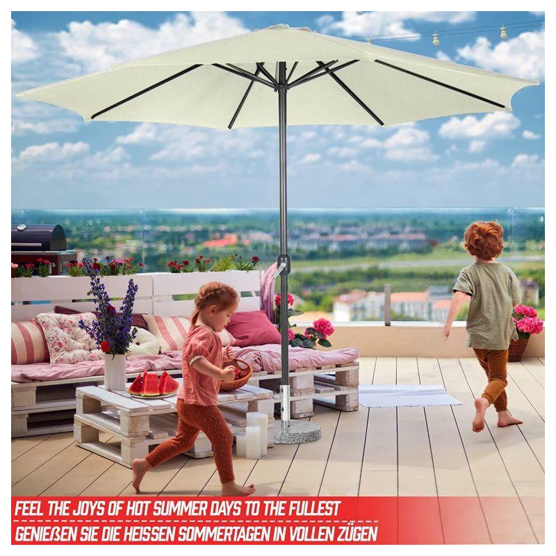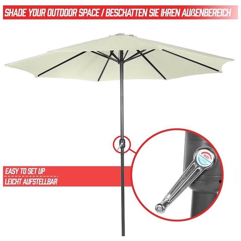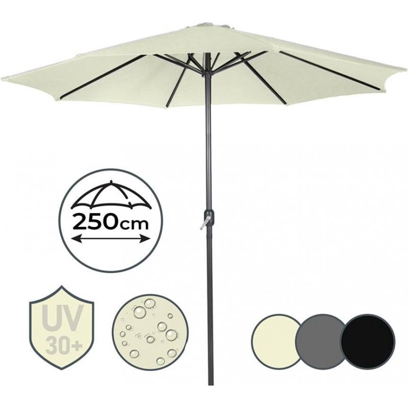 Tento elegantní slunečník s klikou v krémové barvě dodá vaší zahradní dekoraci zvláštní šarm. Díky navíjecímu mechanismu lze slunečník venku snadno otevřít a zavřít. Přístřešek slunečníku se snadno čistí. Zahradní slunečník je vyroben z vodoodpudivé polyesterové tkaniny.