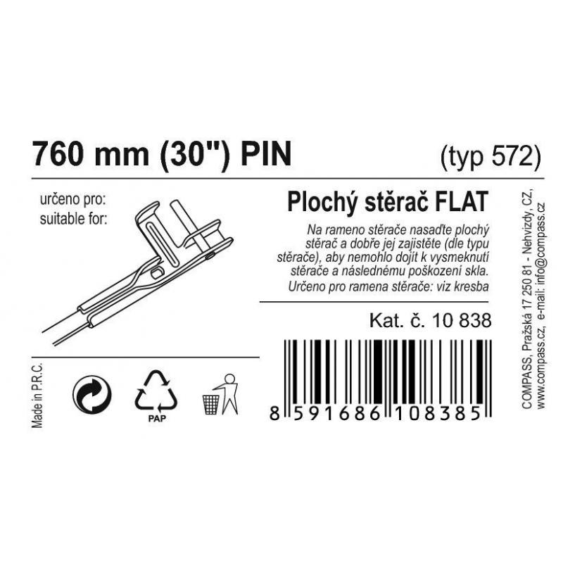 Plochý stěrače FLAT v servisním (průmyslovém) balení, uchycení uzpůsobeno pro daný typ ramena stěrače. Stěrač je balen pouze v papírovém obalu „papper roll", ze kterého je možné stěrač jednoduše vyndat (prohlédnout si jej, vyzkoušet), a případně jej vrátit zpět do obalu. Každé balení stěrače je opatřeno štítkem s označením (včetně délky, čárového kódu i vyobrazení typu ramínka, na který jej lze použít).
