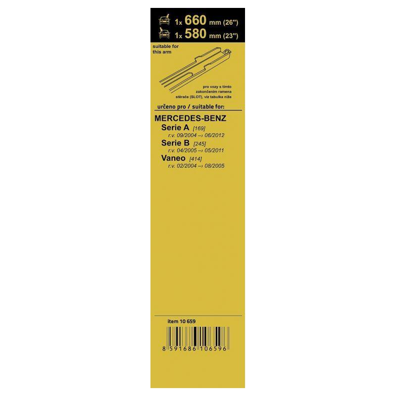 Délky stěračů a systém uchycení na ramínko jsou přizpůsobeny vybraným vozům. Vysoce kvalitní pružný člen plochého stěrače zajišťuje stejnoměrný tlak grafitového břitu v celé jeho délce, což zamezuje rozmazávání nečistot a vytváření pruhů.