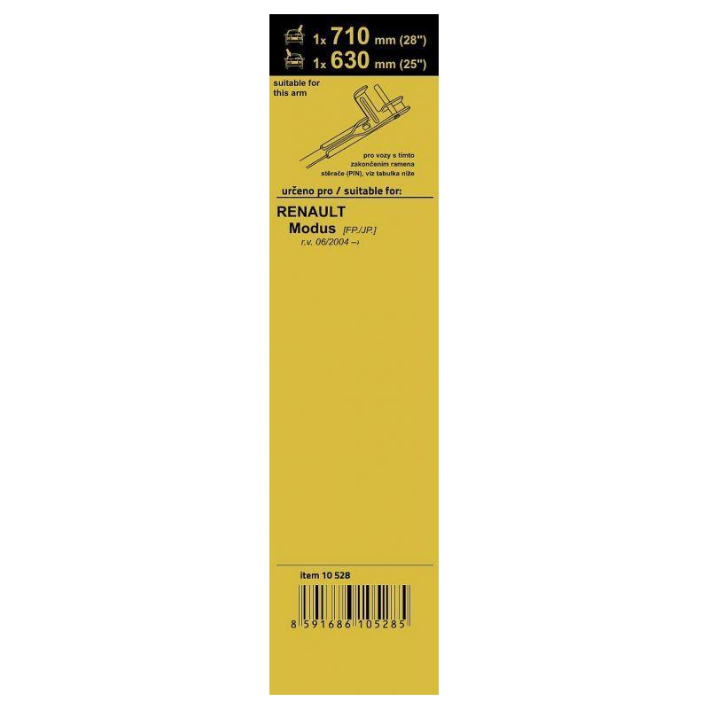 Délky stěračů a systém uchycení na ramínko jsou přizpůsobeny vybraným vozům (viz tabulka použití). Vysoce kvalitní pružný člen plochého stěrače zajišťuje stejnoměrný tlak grafitového břitu v celé jeho délce, což zamezuje rozmazávání nečistot a vytváření pruhů.