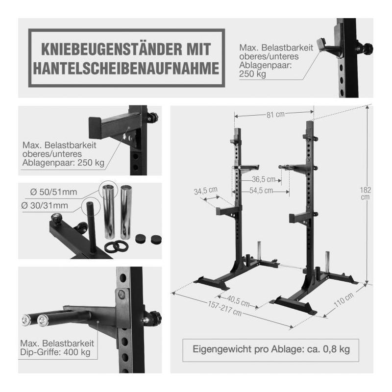 Profesionální sada skládající se ze stojanu na dřepy, olympijské činky a deseti kotoučů je vhodná pro začátečníky i pokročilé. Tato sada Vám nabízí ideální vybavení pro posílení svalů nohou, zad, hrudníku, ramen a horních paží. Při vzpírání v olympijských disciplínách trénujete svaly, které jsou při klasickém bench pressu vynechány. Jakmile si oba cviky osvojíte, můžete je zařadit do křížového tréninku a zintenzivnit tak svůj trénink. To funguje i u variací a u dřepů a čistých cviků. Tato činka je tedy tou správnou první volbou. Činka je kvalitně pochromovaná a má vroubkovanou rukojeť se značením. Zátěžový kotouč od společnosti Gorilla Sports je vhodný pro začátečníky i profesionály. Se zátěžovými kotouči si mohou své tělo podle svých představ zocelit jak vysoce motivovaní začátečníci, tak profesionálové, kteří rádi překonávají své limity. Ať už se jedná o základní cviky pro všeobecné posilování, nebo o izolační cviky pro modelování jednotlivých svalových skupin. Každý kotouč je opatřen nápisem Gorilla Sports a hmotností.