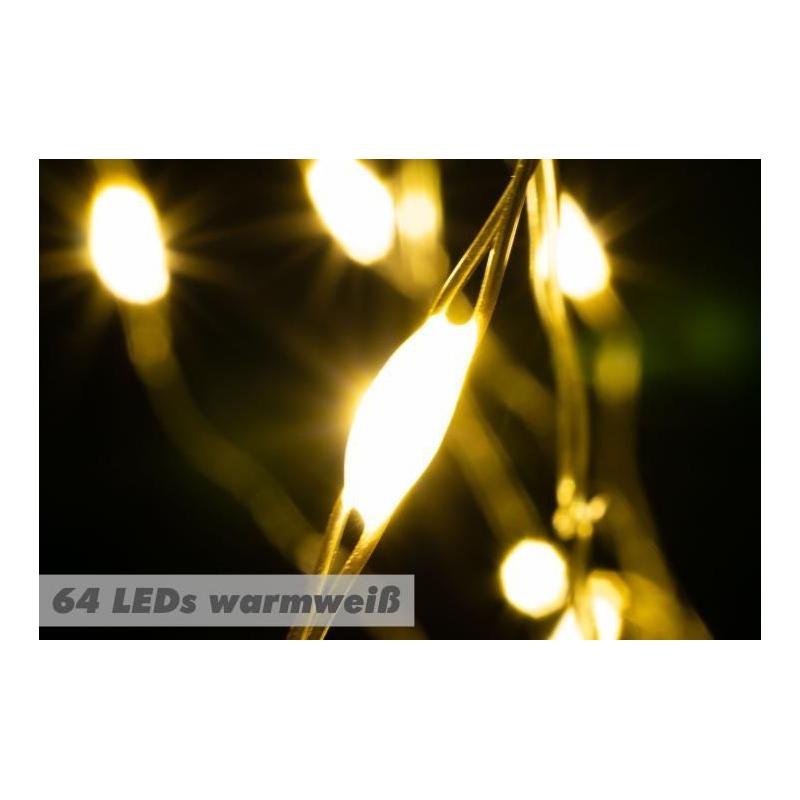 Nejen v době Vánoc vytvoří 64 LEDek ve svazku světelného řetězu slavnostní náladu ve vašich vnitřních prostorech, slavnostně vyzdobeném obývacím pokoji nebo v zimní zahradě. Dokonce i na večírcích nebo v okně je tento světelný řetěz absolutním hitem. Samozřejmě, že i po skončení vánočních svátků je skvělou dekorací pro každou příležitost, ať už jde o narozeniny, výročí nebo svatby. Spotřeba energie je díky efektivní technologii LED extrémně nízká. Pomocí časovače můžete sám rozhodnout, kdy chcete zapnout osvětlení. Vzhledem k provozu na baterii jste nezávislí na externích zdrojích energie a můžete umístit dekoraci volně do prostoru.