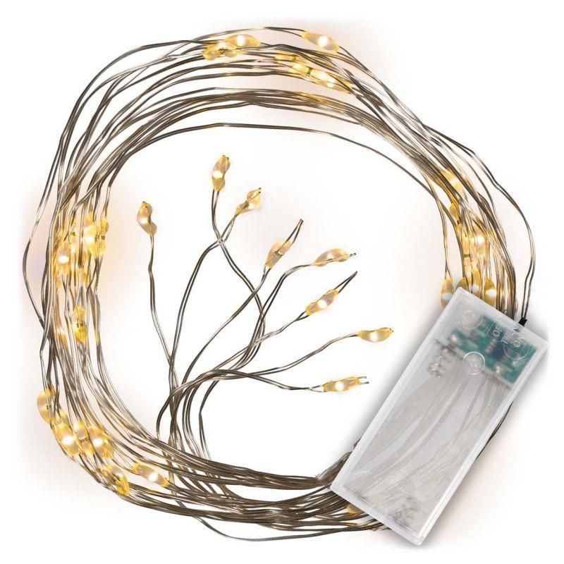 LED osvětlení v podobě 8 pramenů drátků s celkem 48 LED diodami vykouzlí nádhernou atmosféru během celého roku. Osvětlení oceníte nejen v zimní zahradě či obývacím pokoji, ale také během narozeninových oslav, výročí nebo svatby. Spotřeba energie díky technologii LED je zanedbatelná. Díky použití časovače se osvětlení bude zapínat automaticky. Stačí abyste v dobu, kdy chcete aby osvětlení začalo svítit, přepnuli ovládání na pouzdru s baterií do polohy "timer". Osvětlení poté bude svítit 6 hodin, dalších 18 hodin bude vypnuté a poté se opět samo zapne. Když nebudete chtít využívat časovač, ale osvětlení zapínat a vypínat různě stačí použít tlačítko "on/off".