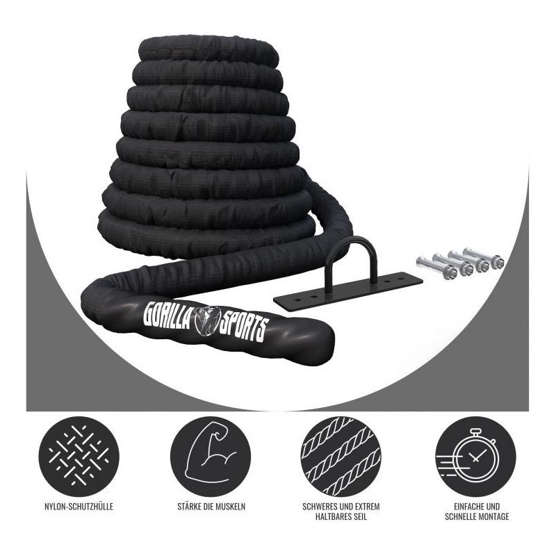 V dnešní době je bojové lano standardní součástí vybavení mnoha fitness studií. Čím dál častěji začíná být oblíbeným tréninkovým zařízením i v domácích posilovnách. Nezabírá mnoho místa při skladování. Na základě různých cviků můžete trénovat prakticky všechny oblasti horní poloviny těla. Pokud uvažujete o pořízení tohoto druhu vybavení, měli byste se ujistit, že vaše domácí posilovna má správné rozměry aby jste mohli plně toto zařízení využít. Pokud jde o různé varianty bojových lan, existují někdy významné rozdíly. Čím delší je lano, tím náročnější je trénink a je lepší začínat s kratším lanem. Úroveň obtížnosti můžete zvýšit také změnou vzdálenosti mezi vámi a příslušným pevným bodem a vzdálením se dozadu. Důležitý je také průměr lana. Čím silnější je lano, tím větší úsilí musíte vynaložit.