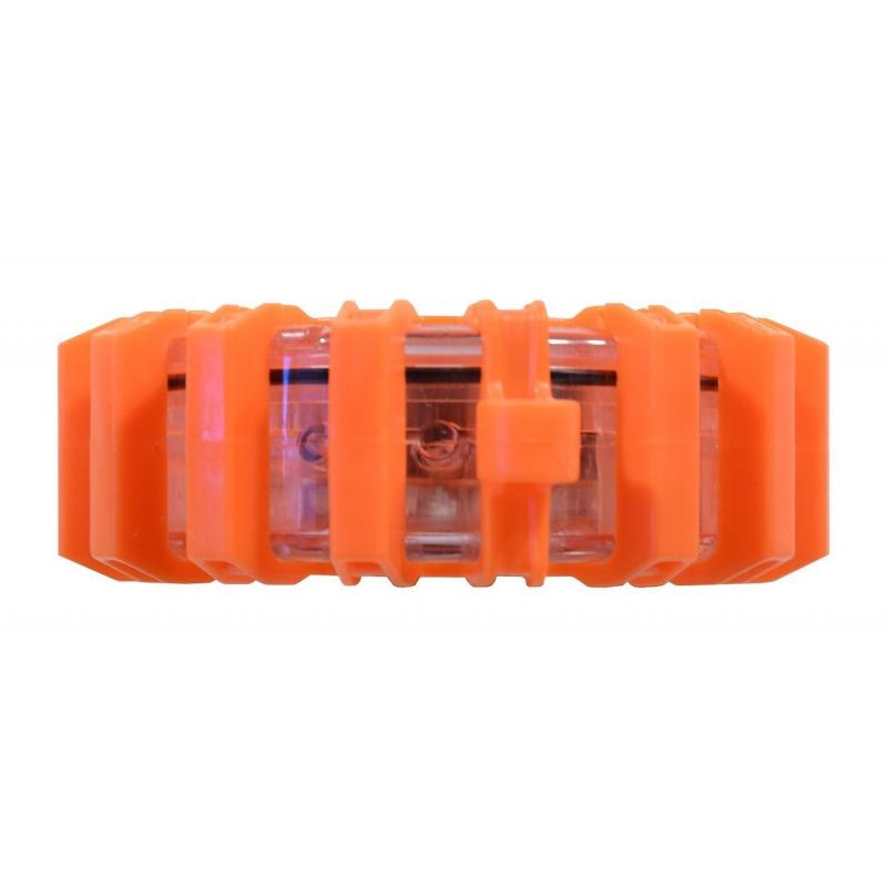 Napájení je řešeno pomocí 2x baterií typu AAA (nejsou přiloženy), baterie se vkládají po odšroubování zadní části krytu. Samotný kryt je gumový s lamelami, chrání světlo proti pádům a zároveň proti tryskající vodě. Výrobek splňuje krytí IP65. Lze přepínat mezi 9 různými režimy, pomocí přepínacího tlačítka na čelní straně.